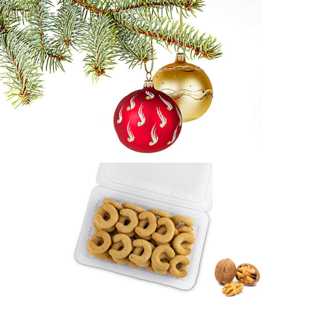 Sveže pečeni domači orehovi rogljički napolnijo dom z vonjem praznikov in ustvarijo tisti pravi občutek topline, ki ga prinese le december. So krhki, masleni in ročno izdelani praznični piškoti, pripravljeni po tradicionalnem receptu, ki združuje preprostost domače peke in bogat okus orehov.