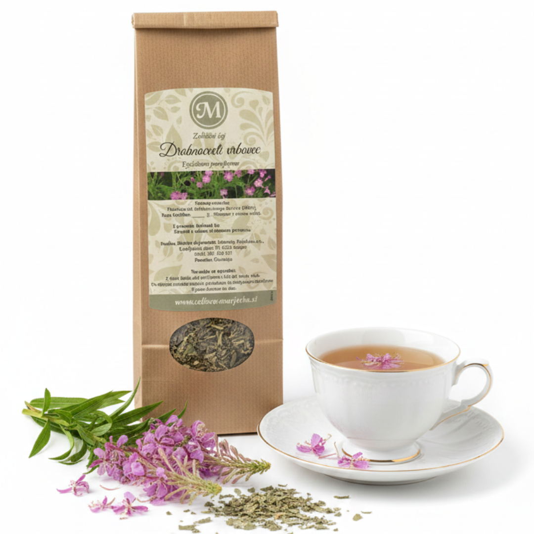 Slovenski ročno pakiran čaj iz drobnocvetnega vrbovca z naravno aromo, idealen za darilo in osebne čajne trenutke