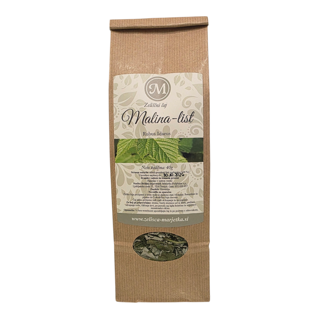 - Sestavine: 100 % posušeni listi malinjaka (Rubus idaeus,folium)